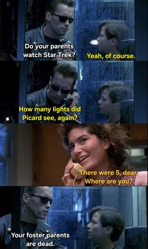 I don’t get it, she’s clearly watched the episode. She didn’t ask Who’s Picard? or What lights?