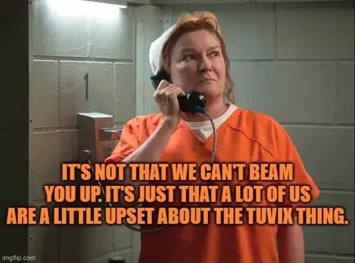 they had tuvix tuesdays where they all made margaritas and celebrated not having to deal with tuvix.