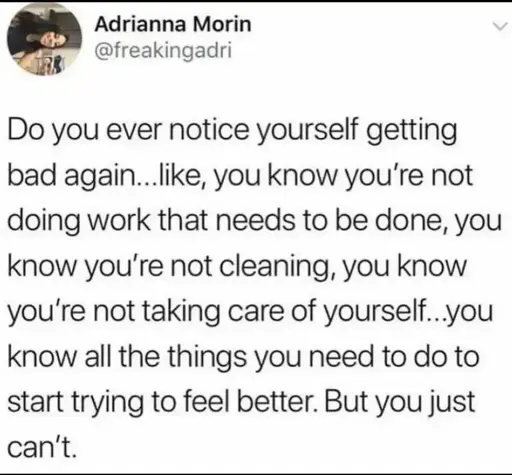 arrow-up110arrow-down1imageCognizant descentlemmy.dbzer0.comdb0@lemmy.dbzer0.comM to ADHD memes@lemmy.dbzer0.comEnglish · 1 year agomessage-square4linkfedilink