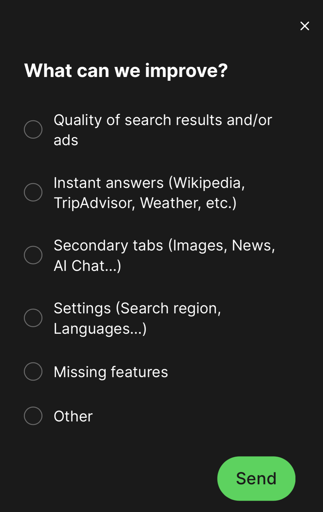 You can find the feedback form on the bottom of the search results. Please ask them to consider using Mastodon, Peertube, Loops and Friendica.