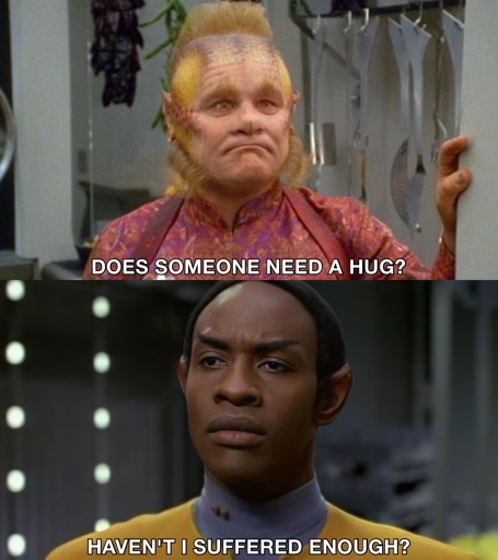 Sisko: “You get the hell outta here. I don’t care where you go. I don’t care that you’re an elf! I don’t care that you’re nuts! I don’t care that you’re my son! Get out of my life now!”