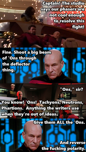 Honestly, when I think about it, the post-Burn era seems downright conservative in terms of societal change, certainly at least within Starfleet. That’s obviously necessary for it to be recognizable as a property, but it’s kind of funny to think that it’s as static as it seems, like closer to the difference between 426 and 1426 than between 1026 and 2026 CE, and I’m probably understating how different the first two were.